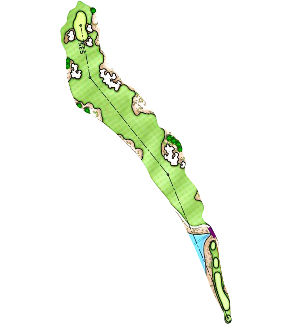 Điểm nhấn của sân là những hồ nước rộng lớn, dòng suối nhân tạo, rặng dừa, hố cát trắng mang lại vẻ đẹp hoang sơ cho Nara Binh Tien Golf Club cũng như những chướng ngại vật thách thức các golfer.