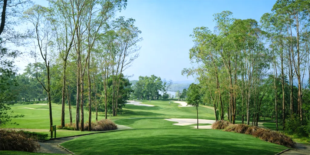 Kings Course trải dài trên sườn đồi dưới chân núi Ba Vì, uốn lượn theo hồ Đồng Mô. Đây là trải nghiệm thú vị cho người đam mê golf.