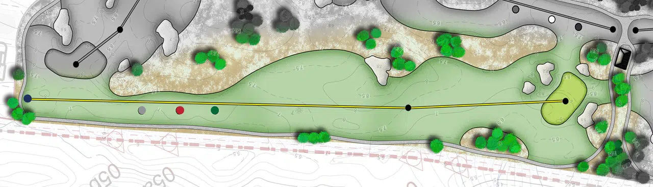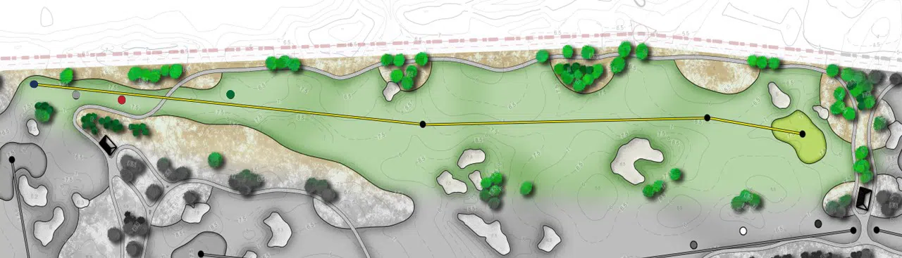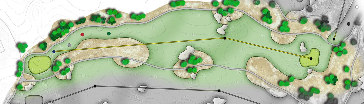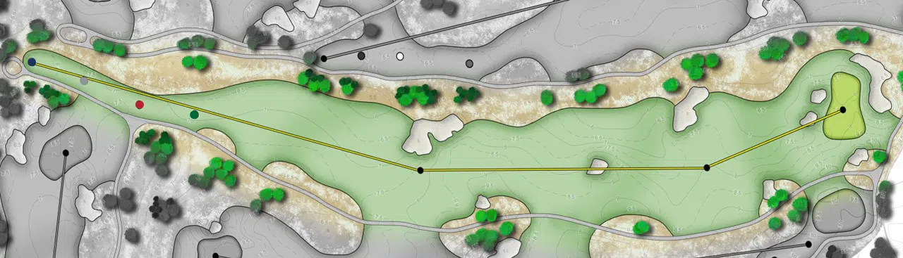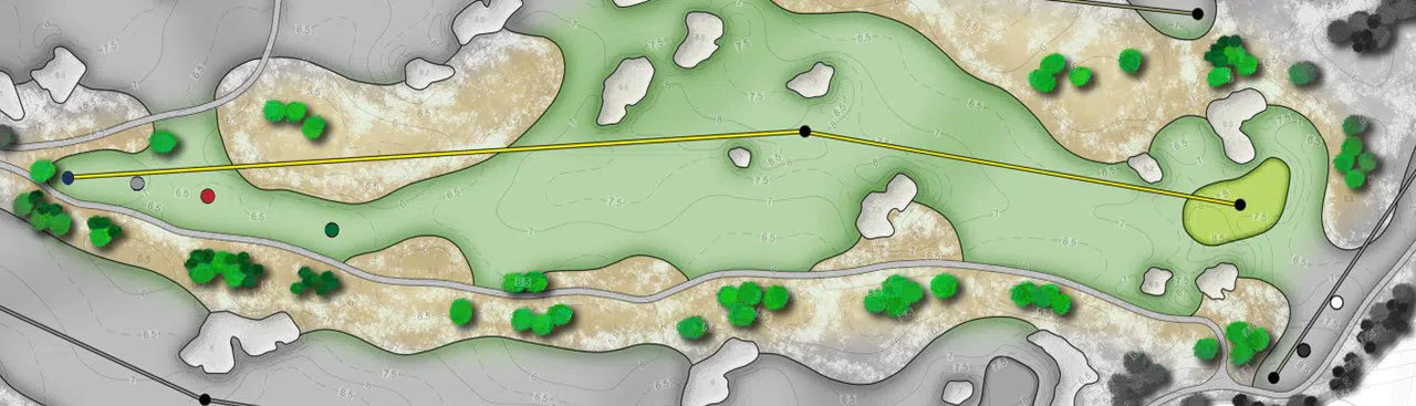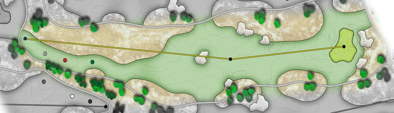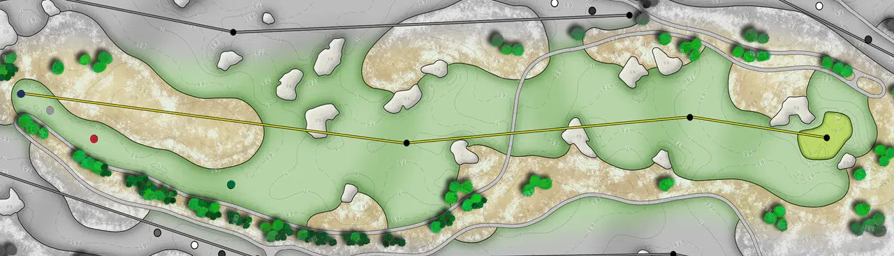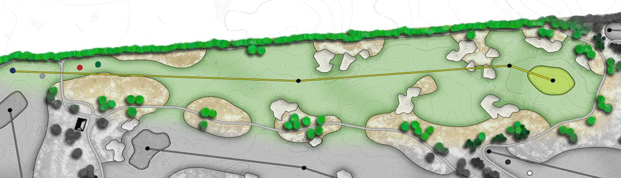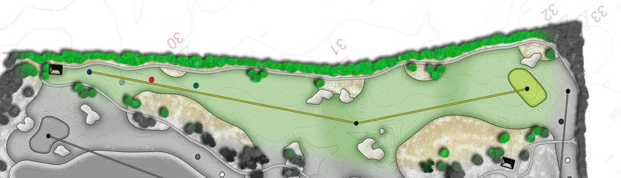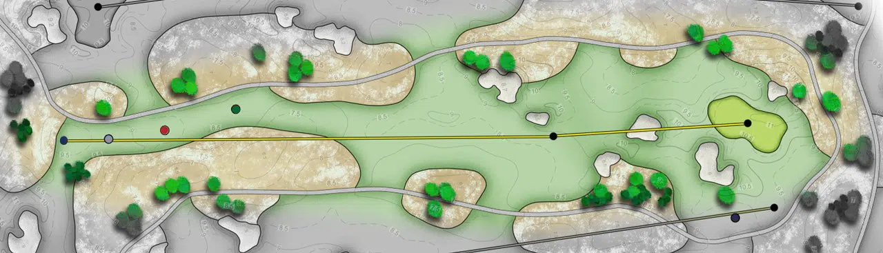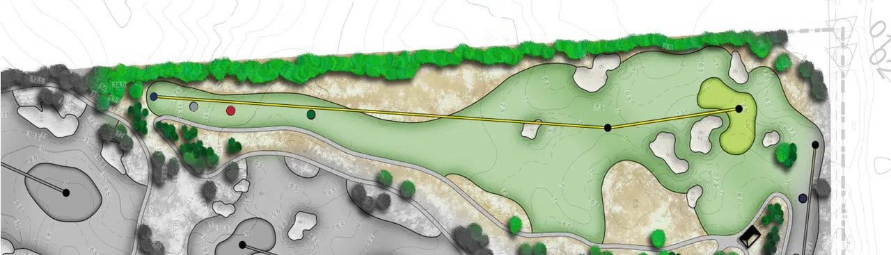 Một cú phát bóng táo bạo vượt qua các bẫy cát phía trái fairway giúp dẫn đến góc tiếp cận tuyệt vời vào khu vực cắm cờ trước green được tôn cao và được bao phủ bởi những bãy cát nằm trước bên phải và sau bên trái