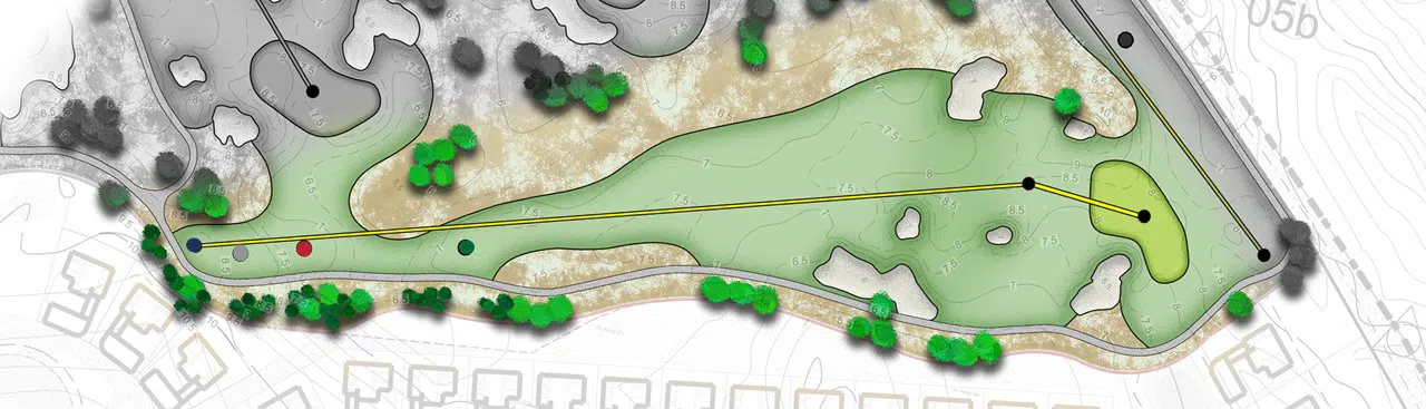 Cho dù khuyến nghị tận dụng các dốc này, vẫn nhất thiết phải tránh cả ba bãy cát do độ khó của cú đánh pitch ra khỏi bẫy cát nối ngược với vùng green và các khu vực cắm cờ. Tóm lại người chơi sẽ thấy những dốc này thuận lợi khi phát bóng nhưng sẽ phản lại người chơi khi phải đánh xung quanh các bãy cát. Cho dù Hố 5 Par 3 được coi là khó khăn, hố 8 và hai hố Par 3 còn lại sẽ khiến golf thủ phải sáng tạo khi thực hiện các cú đánh để có thể tiếp cận các khu vực cắm cờ mới đạt được birdie